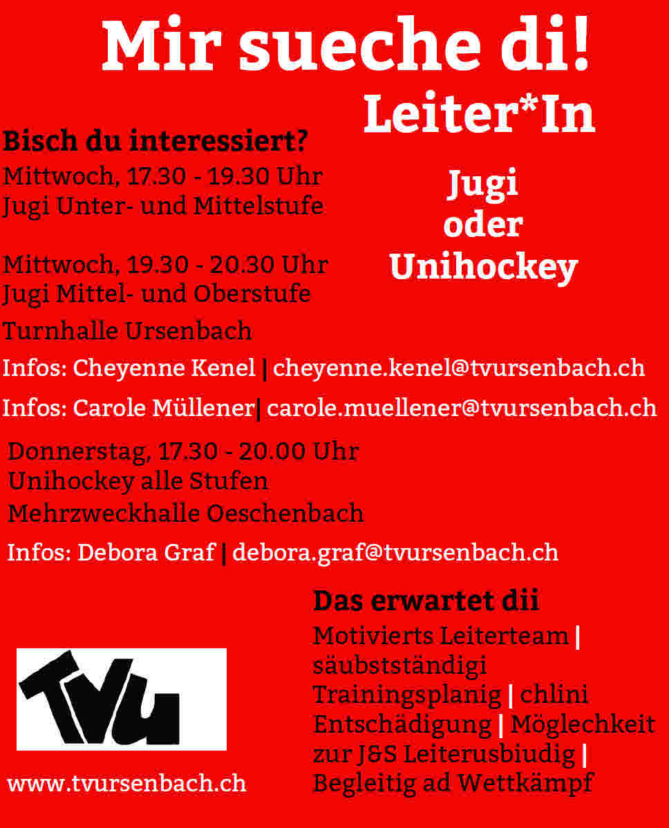 Mir sueche di: LeiterIn Jugi oder Unihockey
